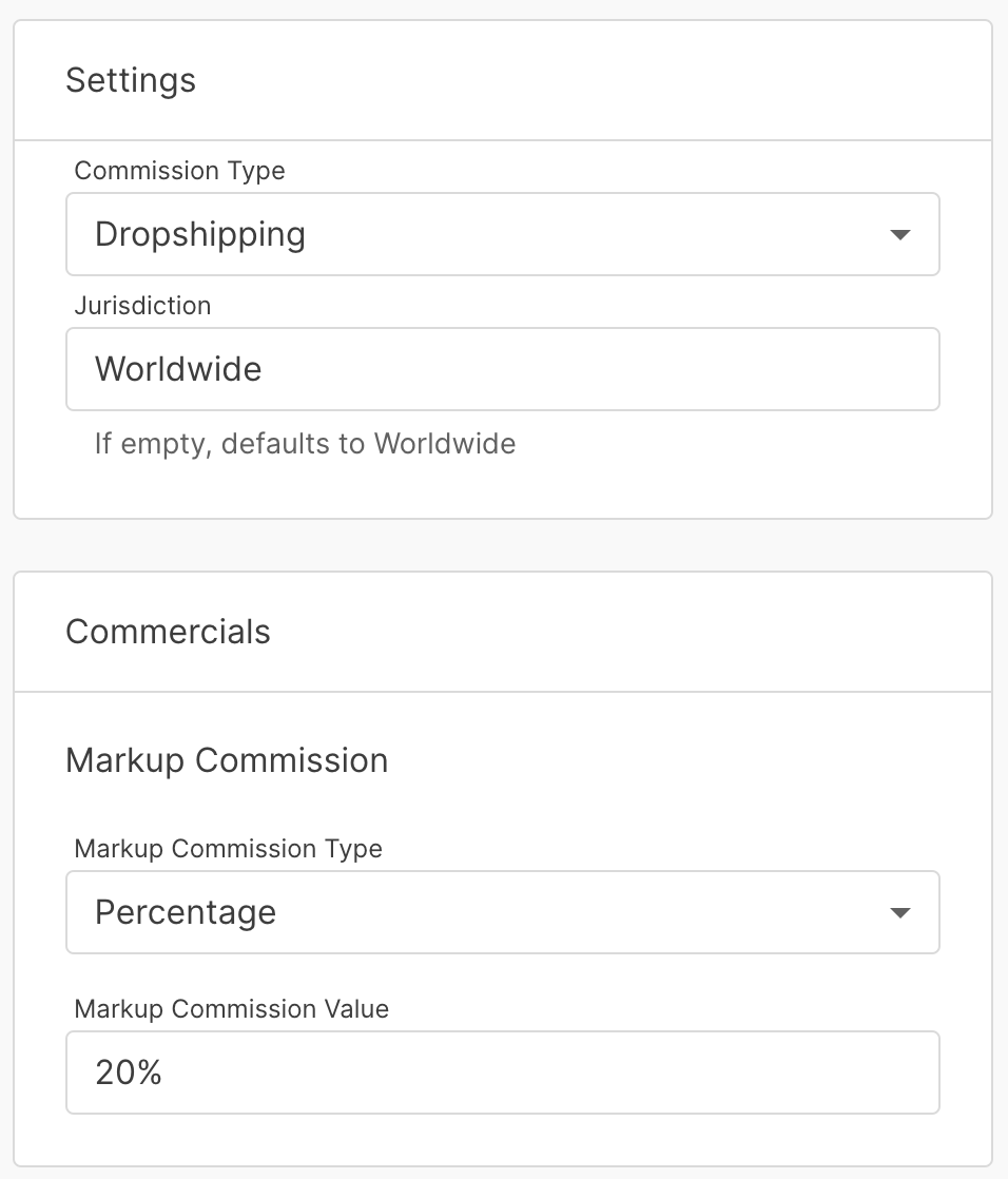 Both commission types automatically apply a percentage-based markup to the seller's base product prices.