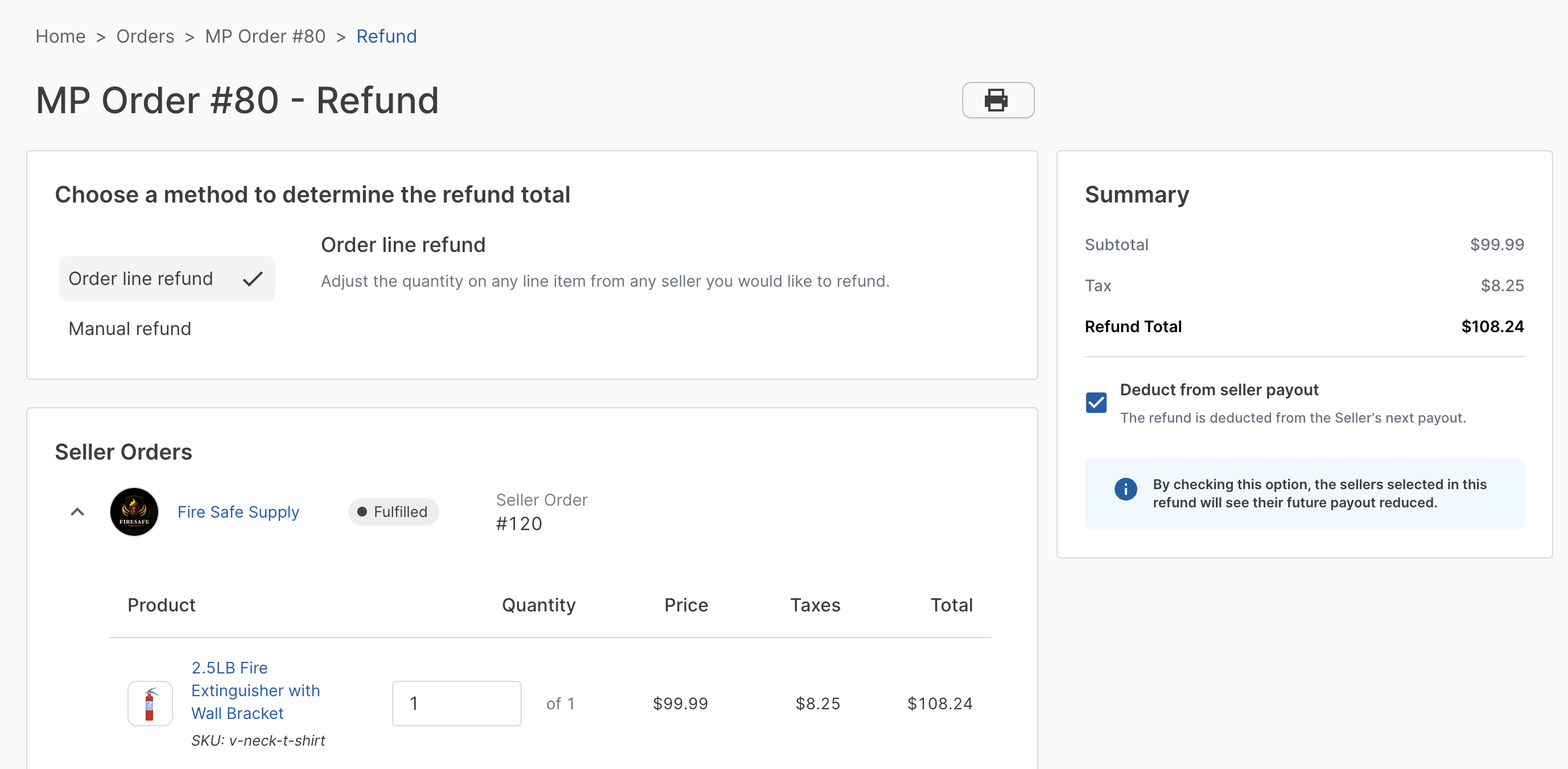 Added more flexibility and precision to our refund capabilities with order line refunds. In addition to the existing options of refunding a percentage or a fixed rate off a seller order or the entire marketplace order, you can now choose to specifically target refunds to individual order lines.