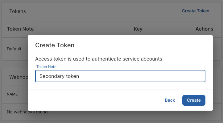 - In the Create Token window, enter a name to identify the token, then select Create.