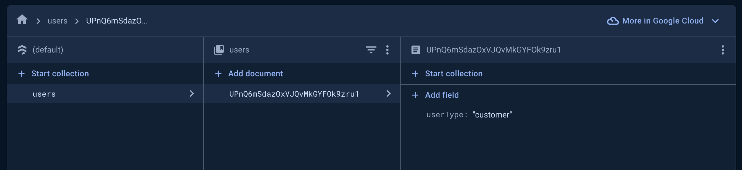 userTypein Firestore along with their user UID, detailed in step 2 below.