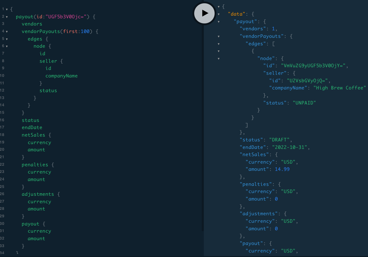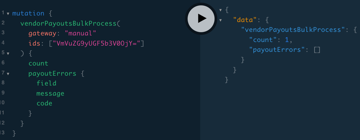 The vendorPayout ID in this case is “VmVuZG9yUGF5b3V0OjY=”, which can be seen in the response above.