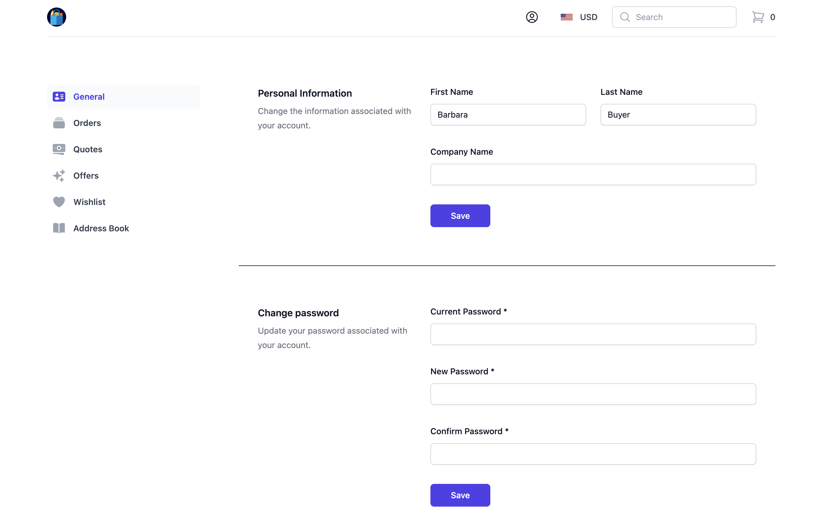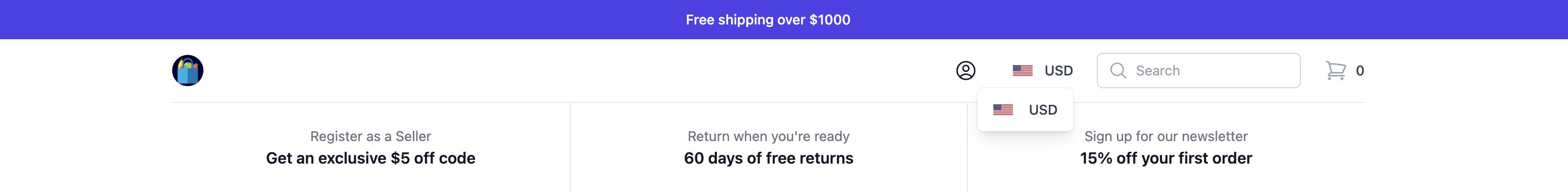 For multi-currency environments, buyers can select the currency they want to see product prices in. You can set the default currency as part of your storefront configuration.