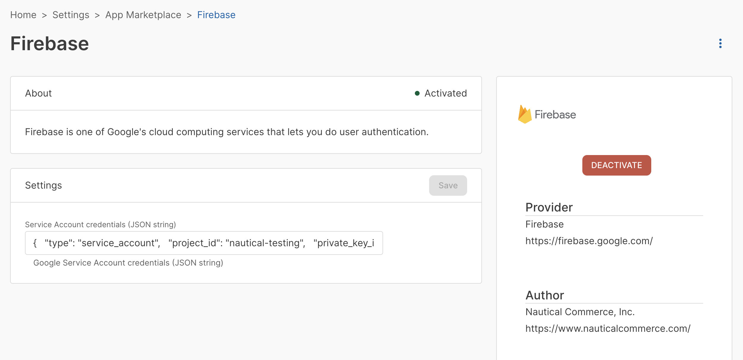 Before you can implement Firebase as your authentication provider in your marketplace, you must activate the Firebase plugin.