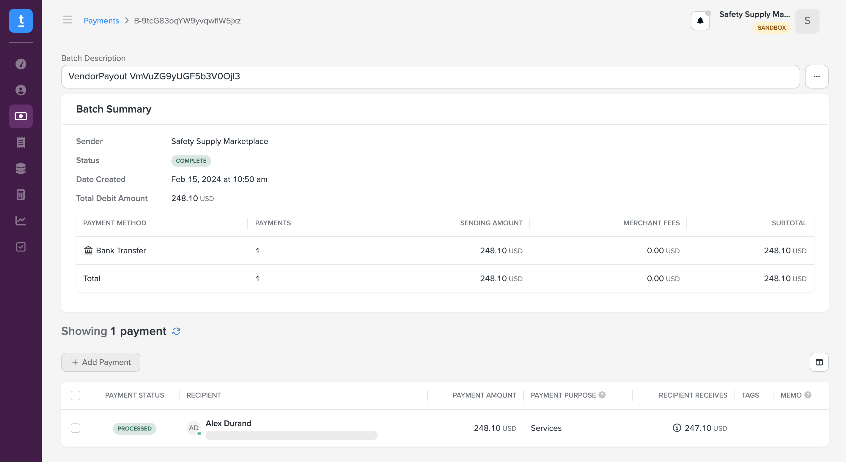 You can view the payment details in Trolley. Payments may be subject to fees for both the operator (merchant) and seller (recipient), in accordance with Trolley's terms.
