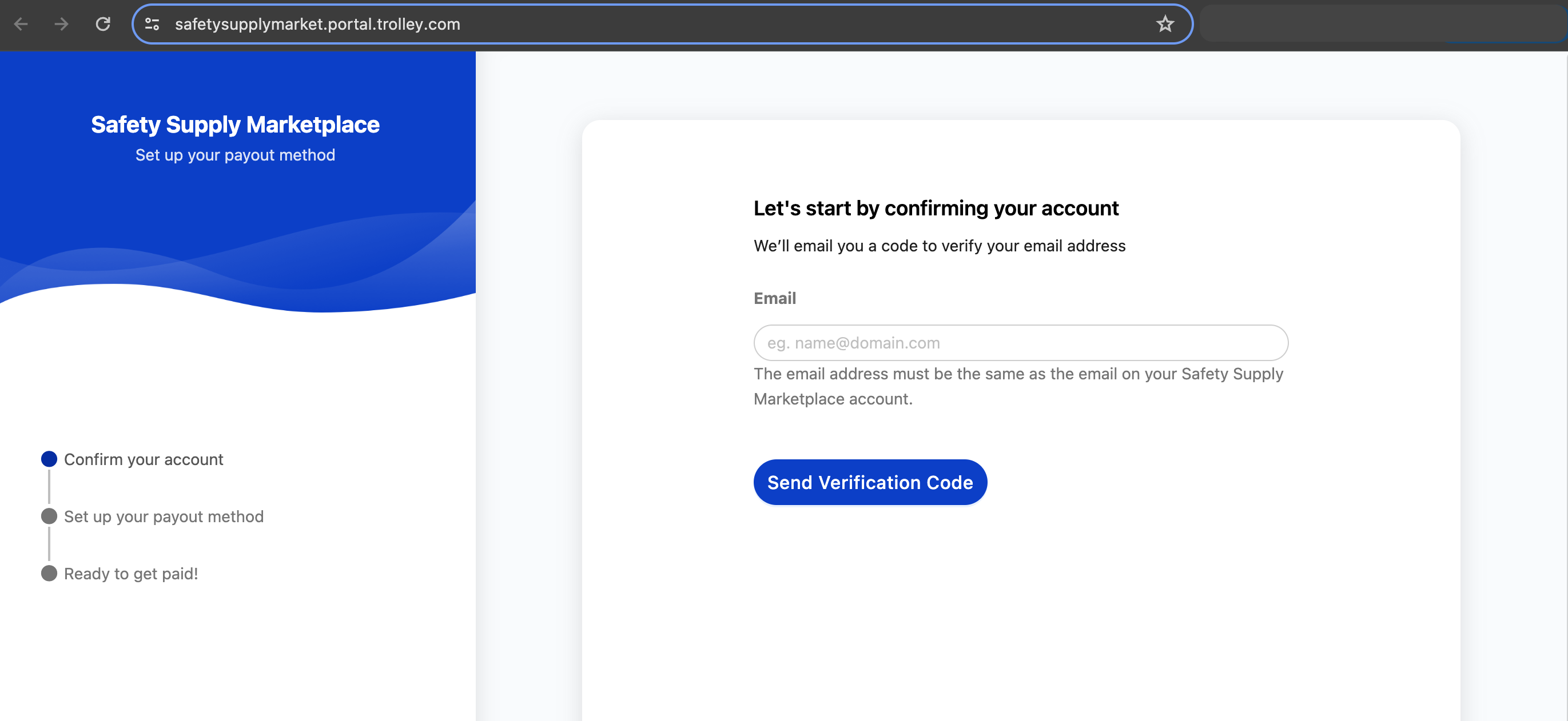 Before you can connect Traide to Trolley, you must register for a Trolley account. Make sure to complete your onboarding by providing information about your business and act